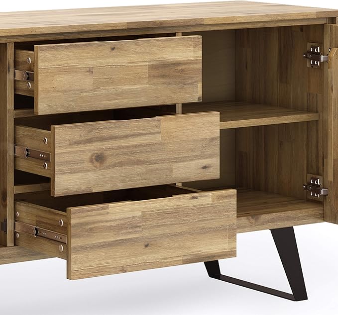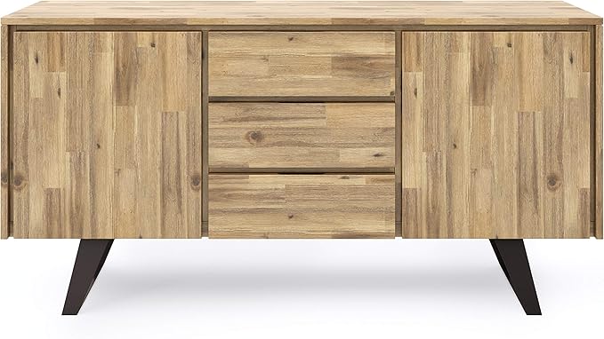 SIMPLIHOME Lowry SOLID ACACIA WOOD and Metal 60 Inch Wide Rectangle Modern Industrial Sideboard Buffet in Distressed Golden Wheat, For the Dining Room and Kitchen