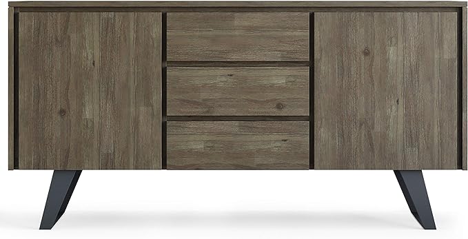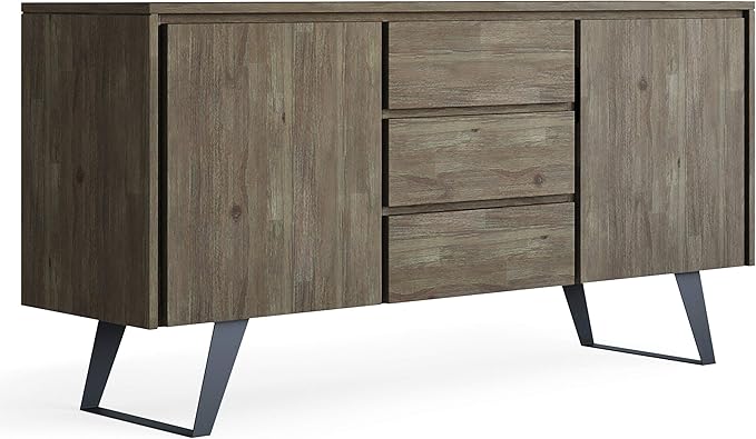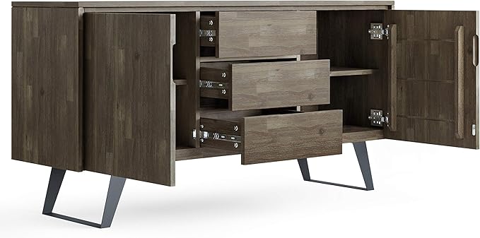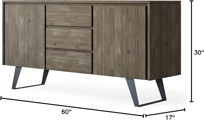 SIMPLIHOME Lowry SOLID ACACIA WOOD and Metal 60 Inch Wide Rectangle Modern Industrial Sideboard Buffet in Distressed Grey, For the Dining Room and Kitchen
