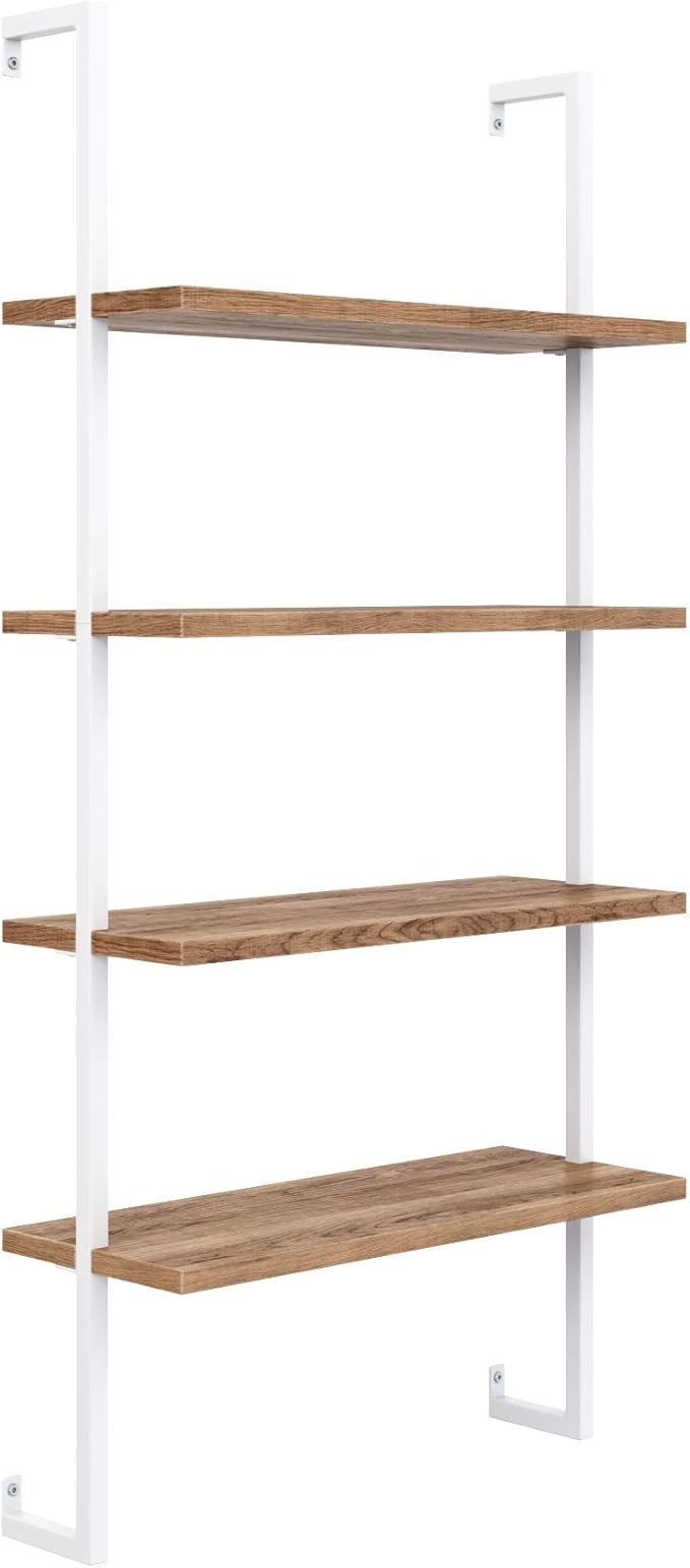Nathan James Theo 4-Shelf Bookcase, Floating Wall Mount Shelves with Natural Wood and Industrial Pipe Metal Frame, Oak/White