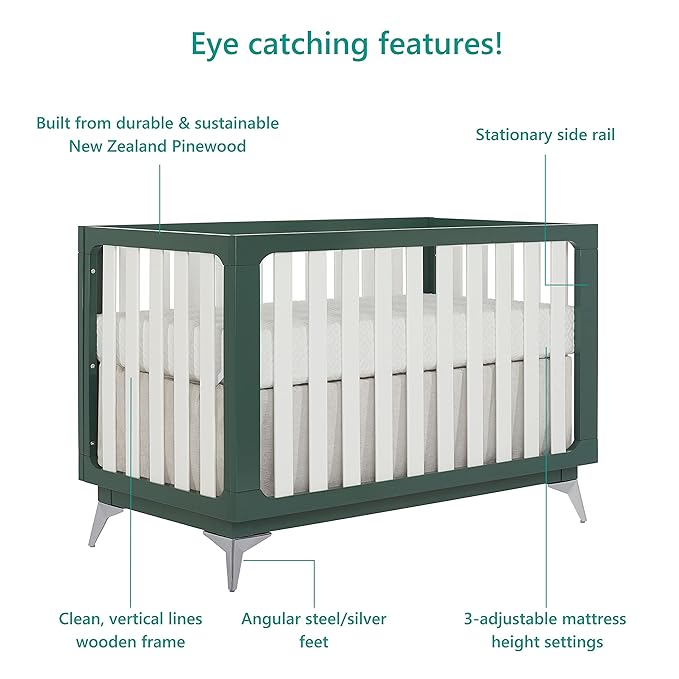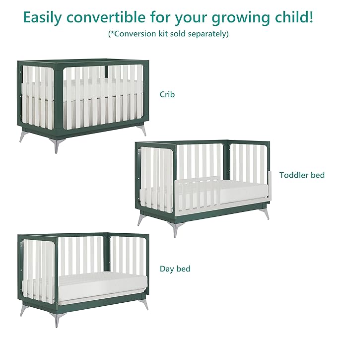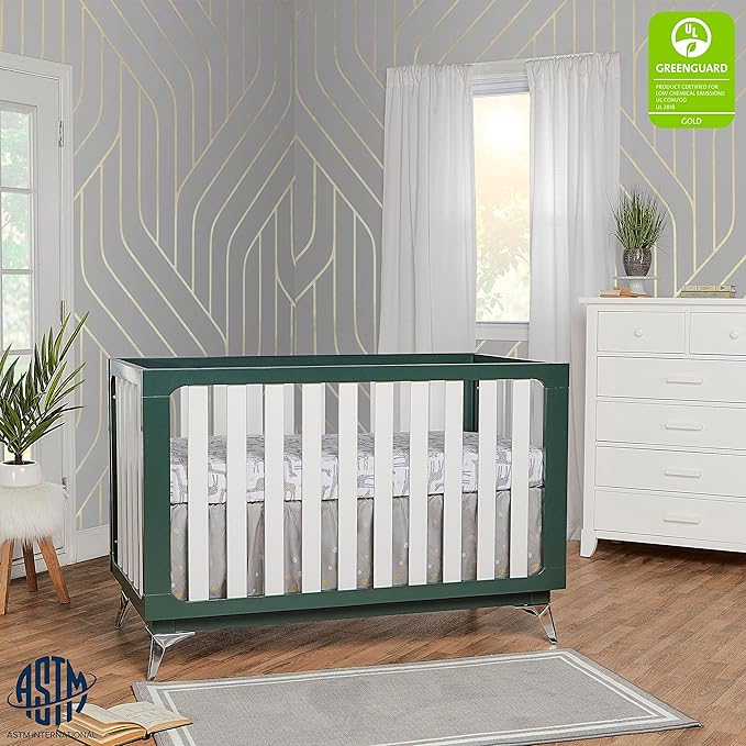 Sweetpea Baby Ultra Modern 4-in-1 Convertible Crib in Green in Olive, Greenguard Gold Certified , 58.5x30x47 Inch (Pack of 1)