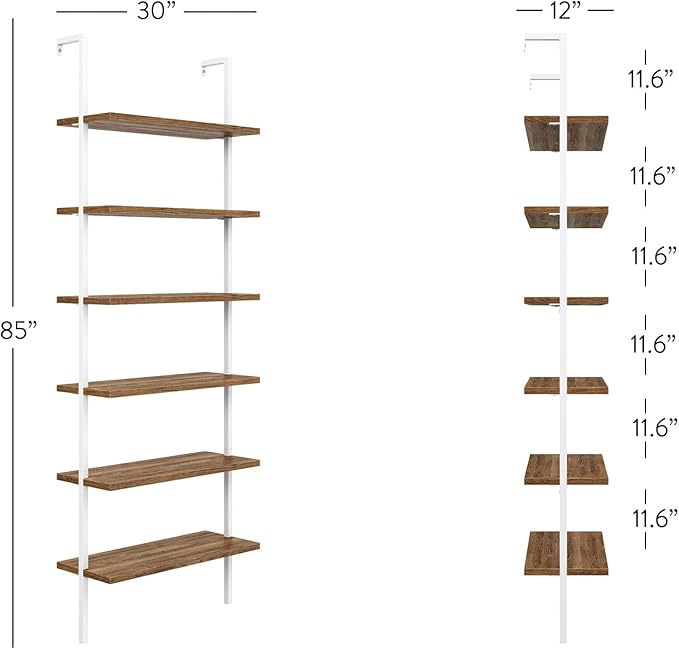 About This This 6-tier tall, modern wall mount bookcase or shelving dresses up any space with its industrial style of...