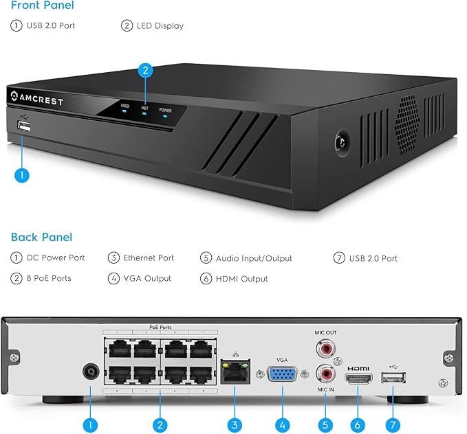 About This Amcrest’s NV4108E-A2 4K 8CH POE NVR comes with a Pre-Installed 2TB Security Surveillance Hard Drive (Supports hard drives...