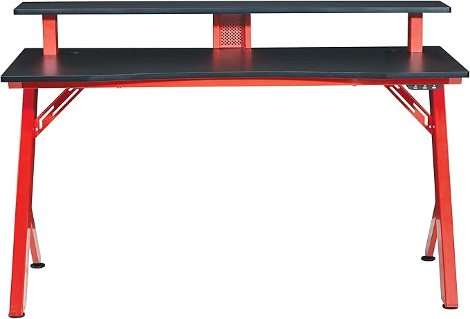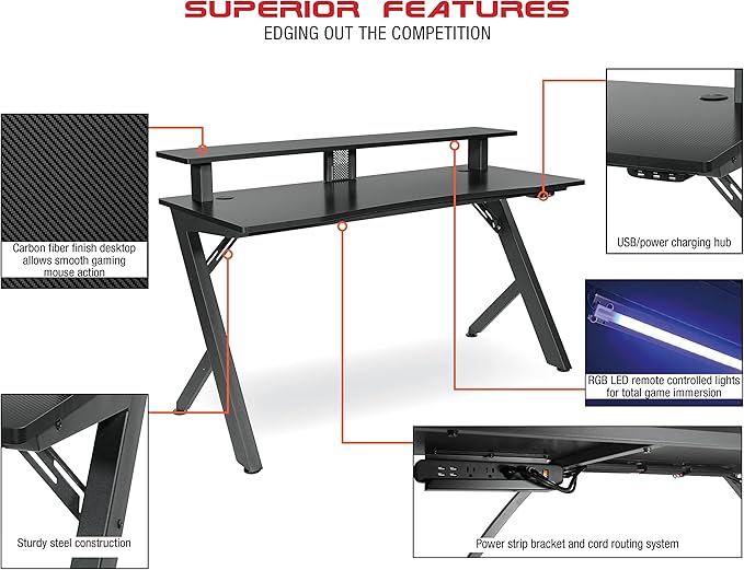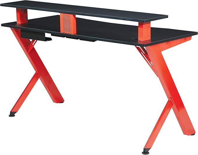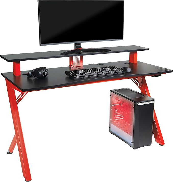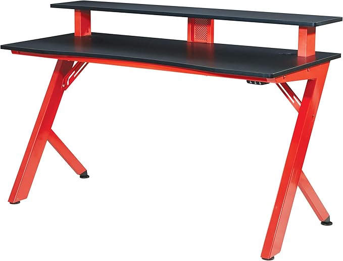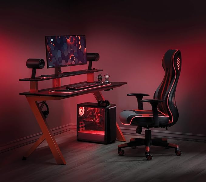 OSP Home Furnishings Area51 Battlestation Gaming Desk with Bluetooth RGB LED Lights, Red