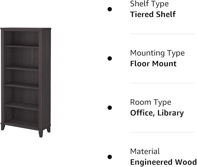 Bush WC81565 Somerset 5-Shelf 65-Inch H Bookcase, Storm Gray