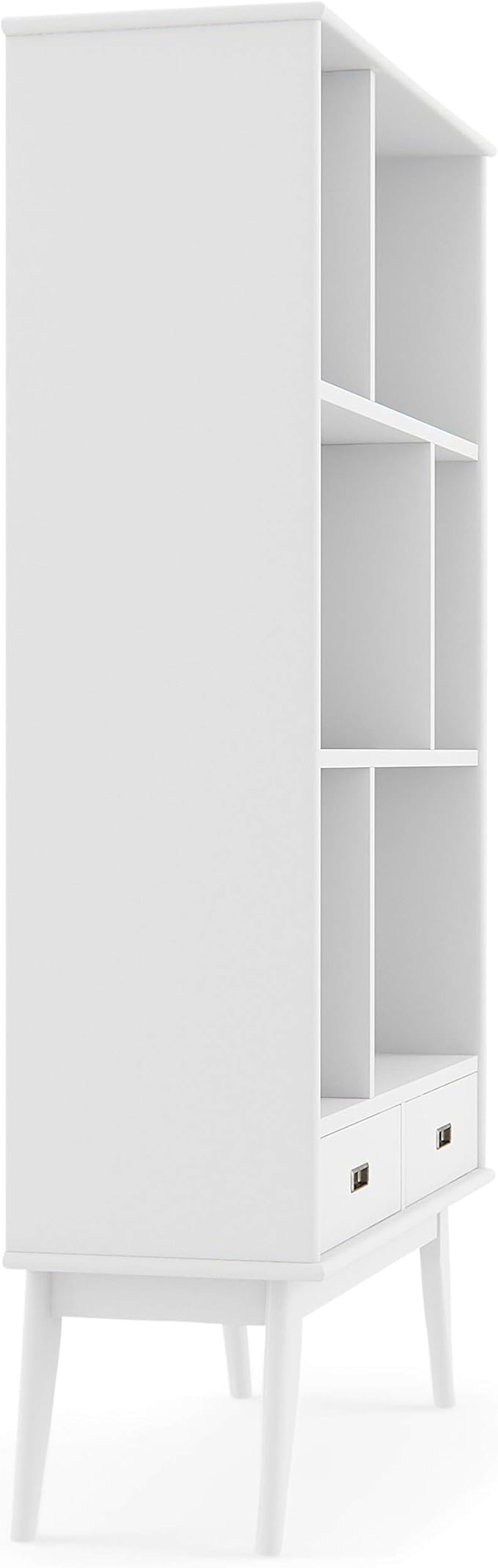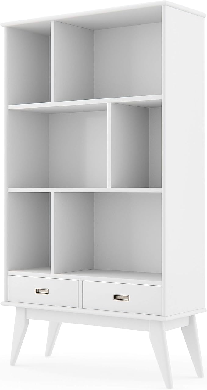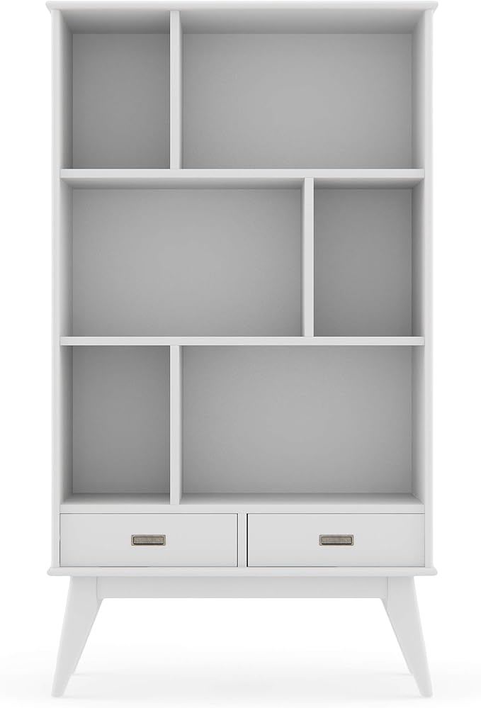 SIMPLIHOME Draper SOLID HARDWOOD 35 Inch Mid Century Modern Wide Bookcase and Storage Unit in White, For the Living Room, Study Room and Office