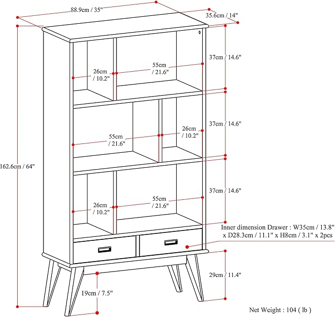 About This Wood Finish White Handcrafted using the finest quality solid rubberwood hardwood Features six (6) shelving compartments two bottom...