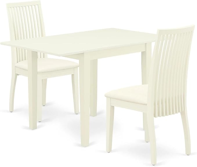 East West Furniture NDIP3-LWH-C Norden 3 Piece Modern Set Contains a Rectangle Wooden Table with Dropleaf and 2 Fabric Dining Room Chairs, 30x48 Inch, Linen White
