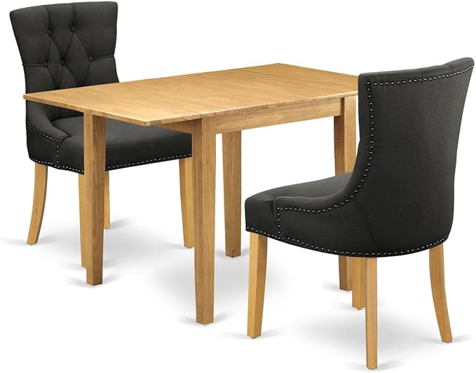East West Furniture NDFR3-OAK-20 Norden 3 Piece Dinette Set for Small Spaces Contains a Rectangle Dining Table with Dropleaf and 2 Dark Gotham Linen Fabric Parson Chairs, 30x48 Inch