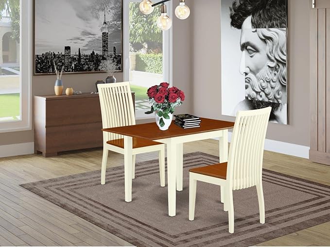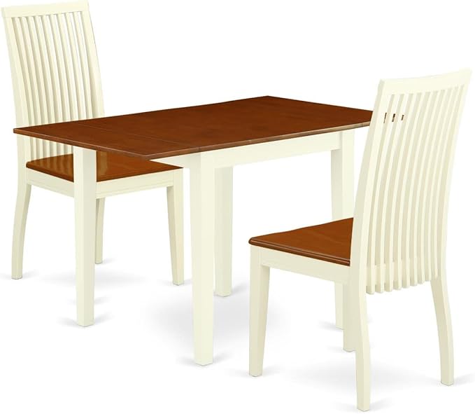 East West Furniture NDIP3-WHI-W Norden 3 Piece Room Furniture Set Contains a Rectangle Kitchen Table with Dropleaf and 2 Dining Chairs, 30x48 Inch, Buttermilk & Cherry