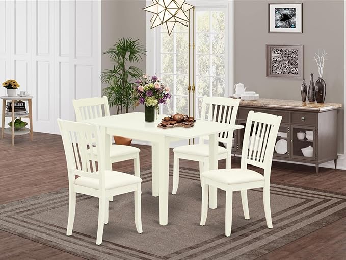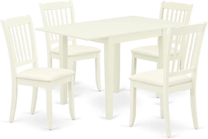 East West Furniture NDDA5-LWH-C Norden 5 Piece Room Set Includes a Rectangle Kitchen Table with Dropleaf and 4 Linen Fabric Upholstered Dining Chairs, 30x48 Inch