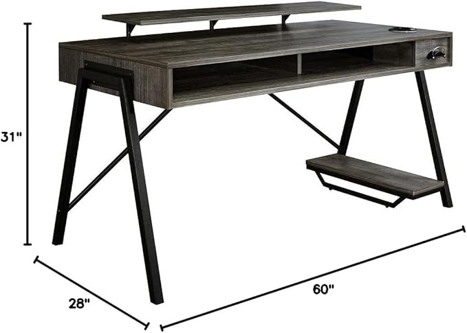 About This GAMING DESK: Desk features a PC stand to keep the unit off the floor and dust-free, a desktop...