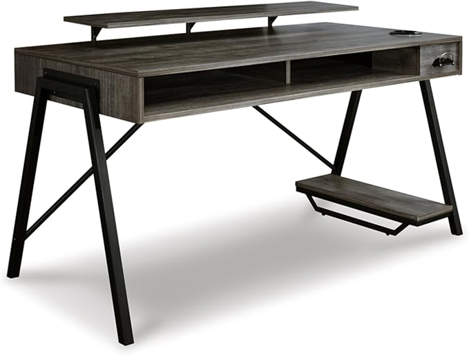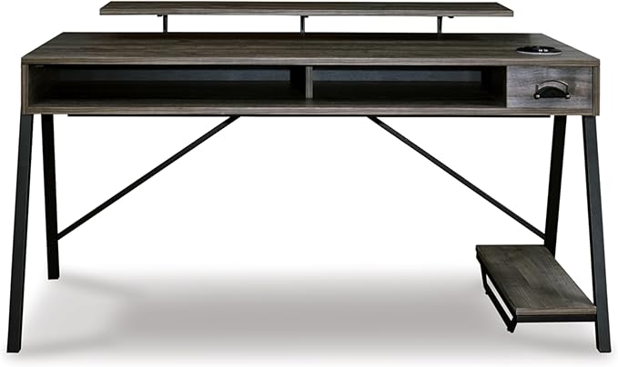 Signature Design by Ashley Barolli Home Office Gaming Desk with Multiuple LED Back Lights, Grayish Brown