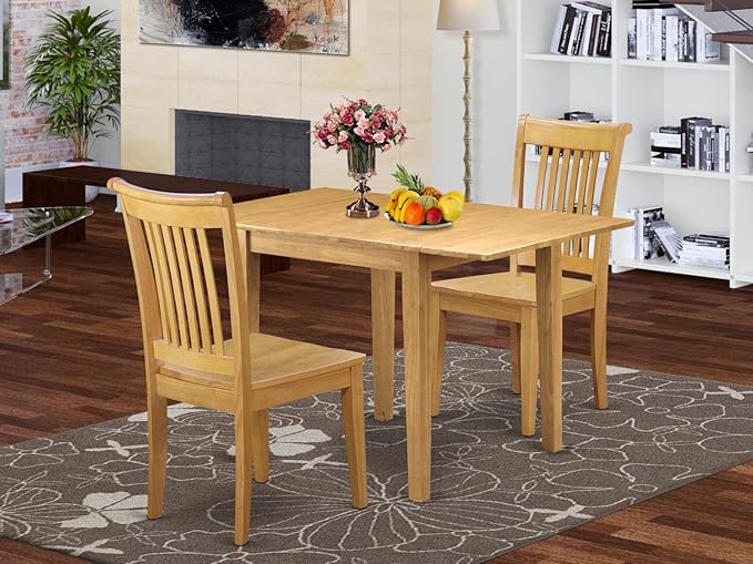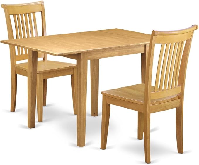 East West Furniture NDPO3-OAK-W Norden 3 Piece Kitchen Set Contains a Rectangle Dining Room Table with Dropleaf and 2 Solid Wood Seat Chairs, 30x48 Inch, Oak