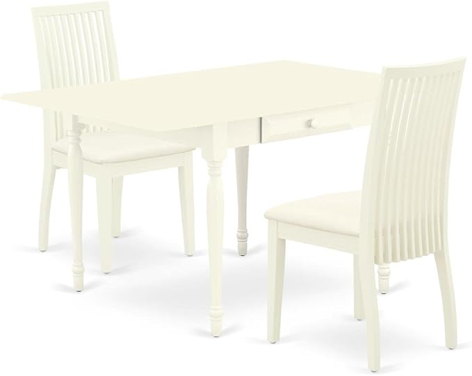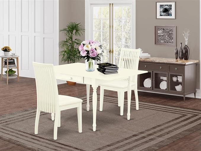 East West Furniture Monza 3 Piece Room Set Contains a Rectangle Kitchen Table with Dropleaf and 2 Fabric Upholstered Dining Chairs, 36x54 Inch, Linen White