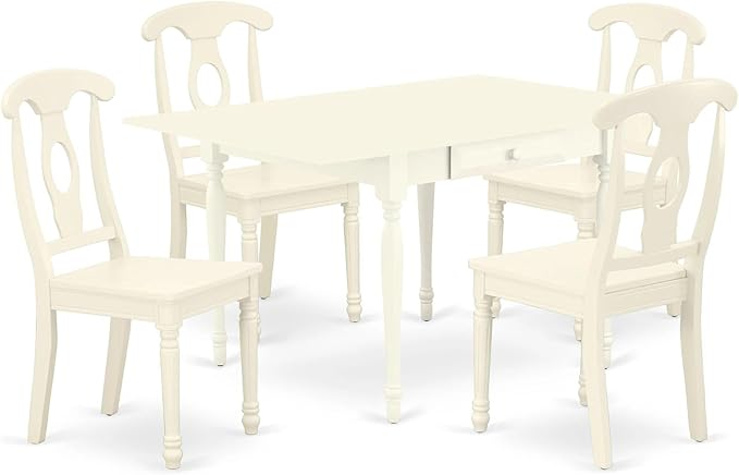 East West Furniture MZKE5-LWH-W Monza 5 Piece Room Furniture Set Includes a Rectangle Kitchen Table with Dropleaf and 4 Dining Chairs, 36x54 Inch