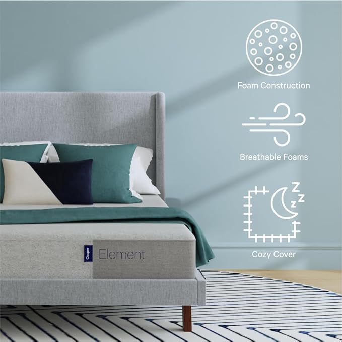 Casper Sleep Element, Medium Firm Twin Mattress - Memory Foam + Support - 100-Night Trial - CertiPUR-US Mattress, Grey