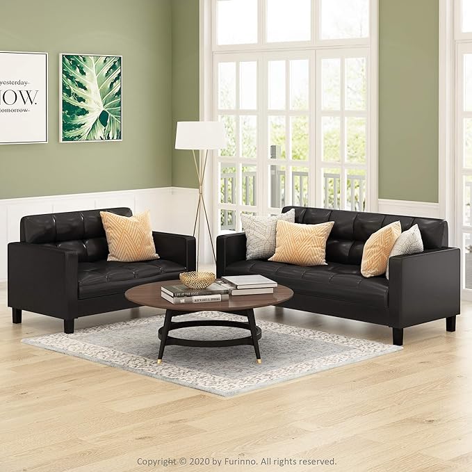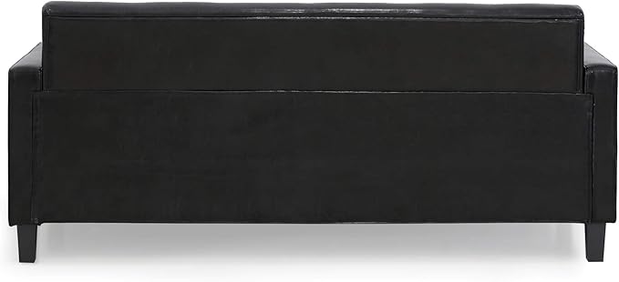 Furinno Brive Contemporary Tufted Faux Leather 3-Seater Sofa Couch for Living Room, Black Faux Leather