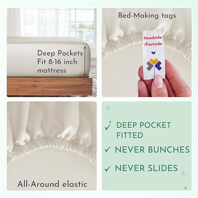 California Design Den Luxury King Size Sheet Set - 100% Cotton, 600 Thread Count Deep Pocket King Sheets, Hotel-Quality Bedding with Sateen Weave - Ivory