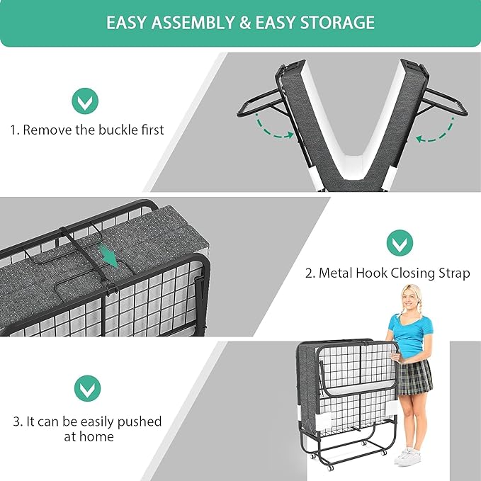 About This ★ UPDATED FRIENDLY DESIGN - Compare with other rollaway bed, foxemart's folding bed overcomes the shortcoming of the...
