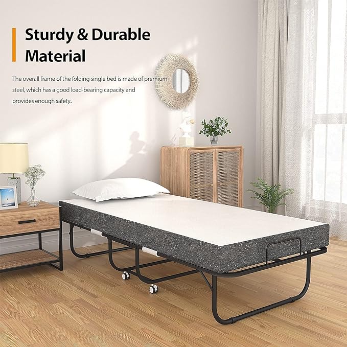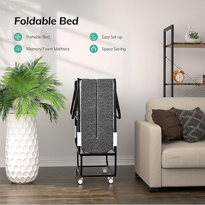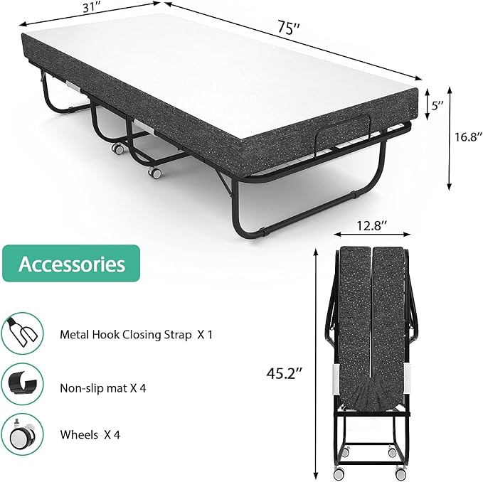 Foxemart Folding Bed with Mattress Portable Foldable Guest Beds Cot Size Rollaway Beds for Adults with Luxurious Memory 5 Inch Foam Mattress and Super Sturdy Frame, 75 x 31 Inch