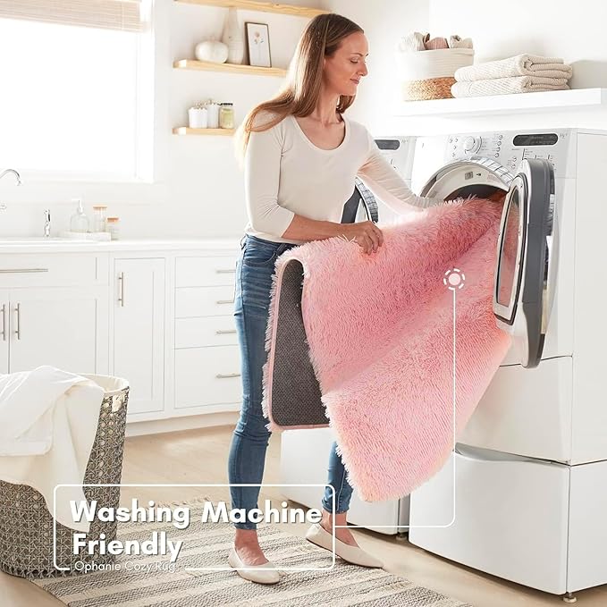 Ophanie 4x6 Pink Rugs for Bedroom Girls, Machine Washable Fluffy Shaggy Soft Cute Area Rug, Non-Slip Indoor Floor Carpet for Living Room, Kids Baby Teen Dorm Home Decor Aesthetic, Nursery