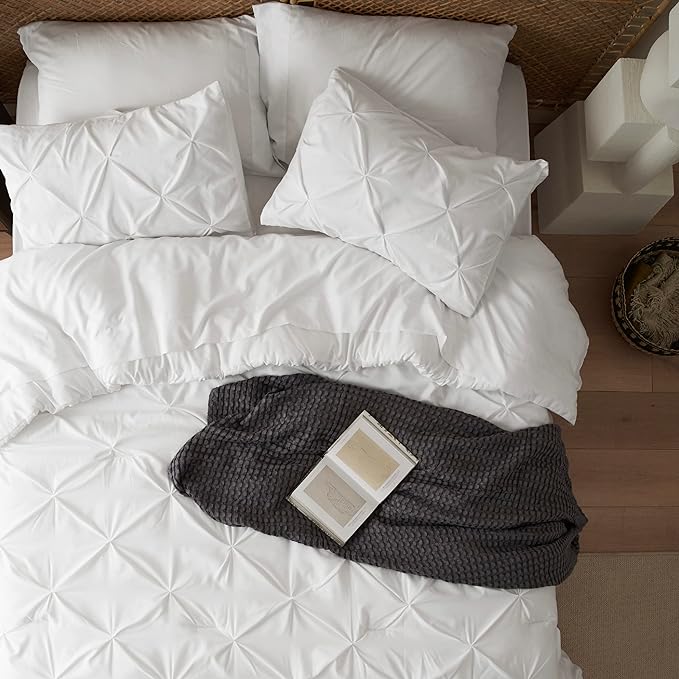 Bedsure White King Size Comforter Set - Bedding Set King 7 Pieces, Pintuck Bed in a Bag White Bed Set with Comforter, Sheets, Pillowcases & Shams