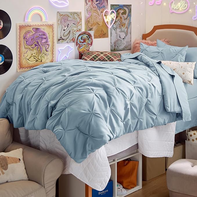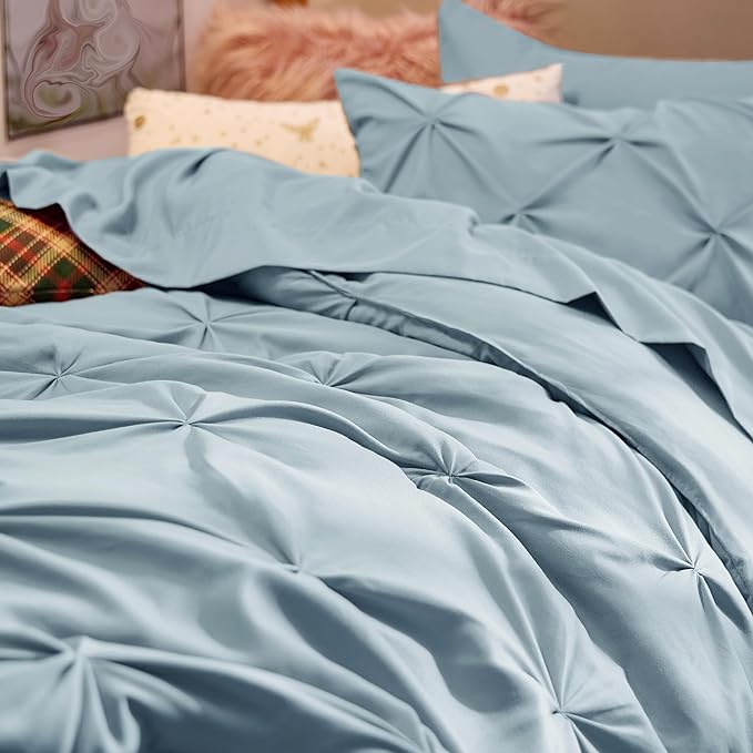 Bedsure Twin Comforter Set with Sheets - 5 Pieces Twin Bedding Sets, Pinch Pleat Blue Twin Bed in a Bag with Comforter, Sheets, Pillowcase & Sham