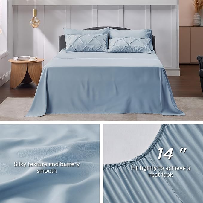 Bedsure Blue Comforter Set Queen - Bed in a Bag Queen 7 Pieces, Pintuck Bedding Sets Light Blue Bed Set with Comforter, Sheets, Pillowcases & Shams