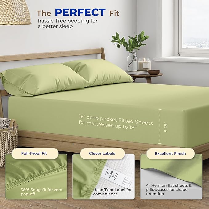 THREAD SPREAD 100% Egyptian Cotton Sheets Twin - 600 Thread Count Sheets Twin, 3 PC Deep Pocket Twin Sheets, Soft, Cooling Sateen Weave Extra Long Twin Sheets for Dorm, 16 in Deep Pocket - Sage Green