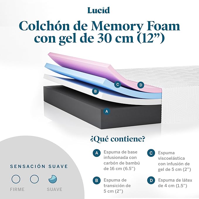 About This PLUSH FEEL: This Lucid mattress provides a plush feel ideal for side and back sleepers and is a...