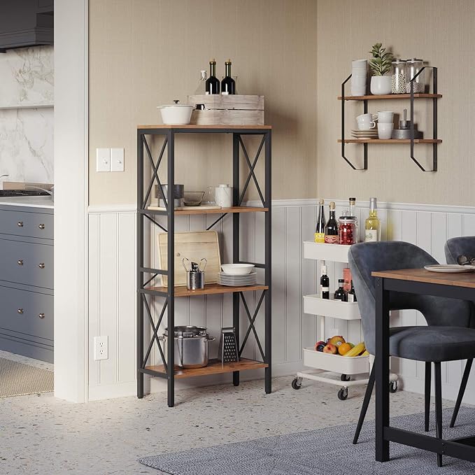 VASAGLE DAINTREE Bookshelf, Kitchen Shelf, Free Standing Shelf, Ladder Rack with 4 Open Shelves, for Kitchen, Office, Stable Steel Frame