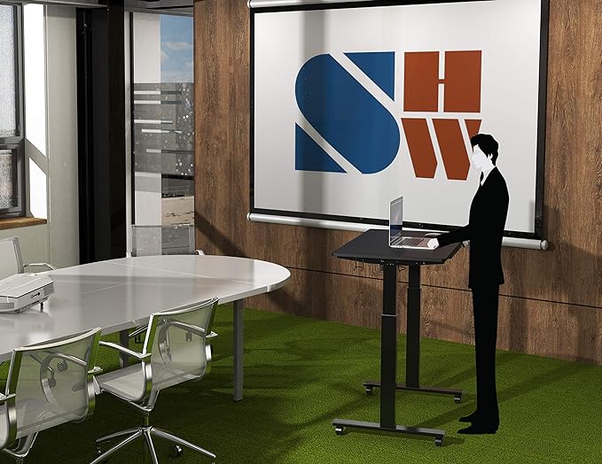 SHW Small Electric Height Adjustable Mobile Sit Stand Desk with Drawer, Hanging Hooks and Cable Management, 40 x 24 Inches, Black