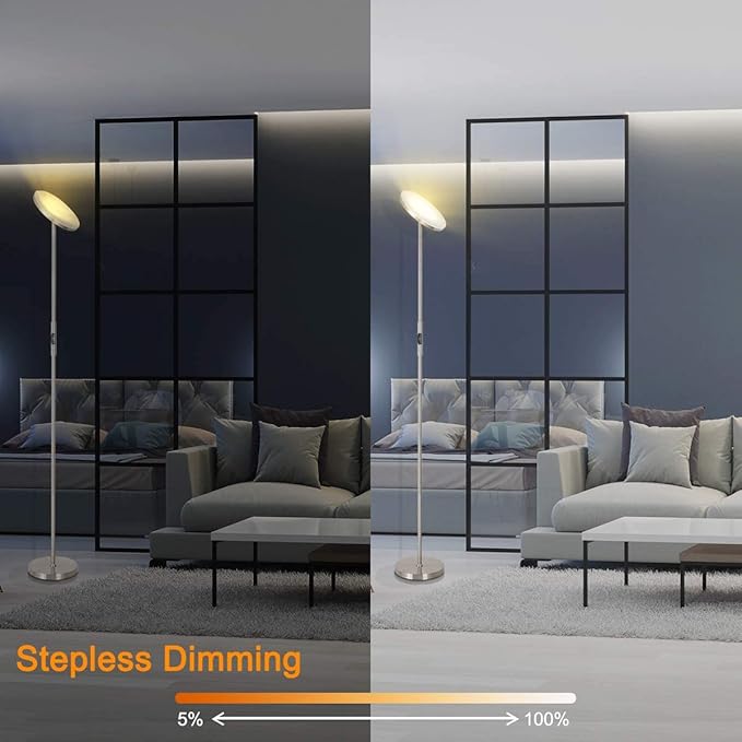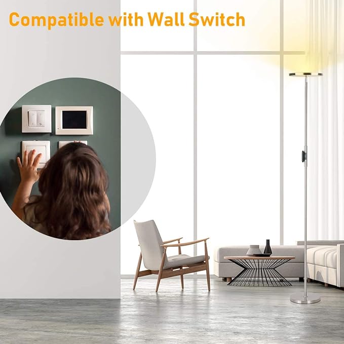 Floor Lamp,30W/2400LM Sky LED Modern Torchiere 3 Color Temperatures Super Bright Floor Lamps-Tall Standing Pole Light with Remote & Touch Control for Living Room,Bed Room,Office (Brushed Nickel)