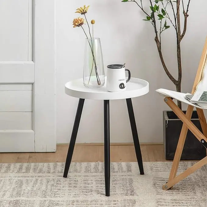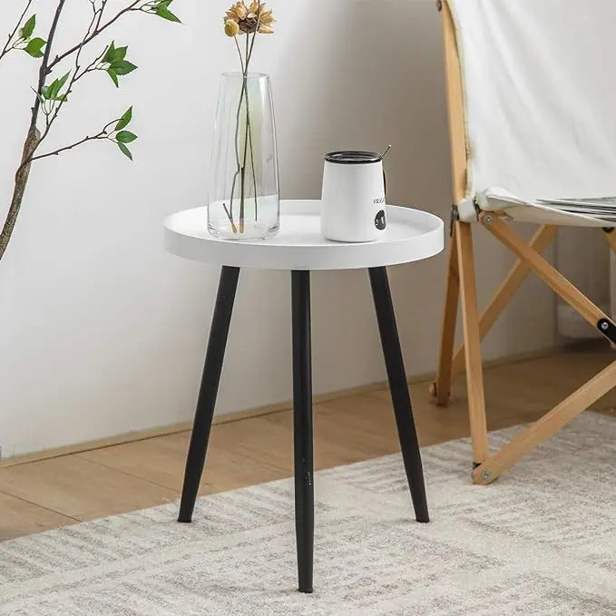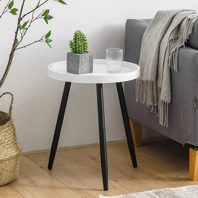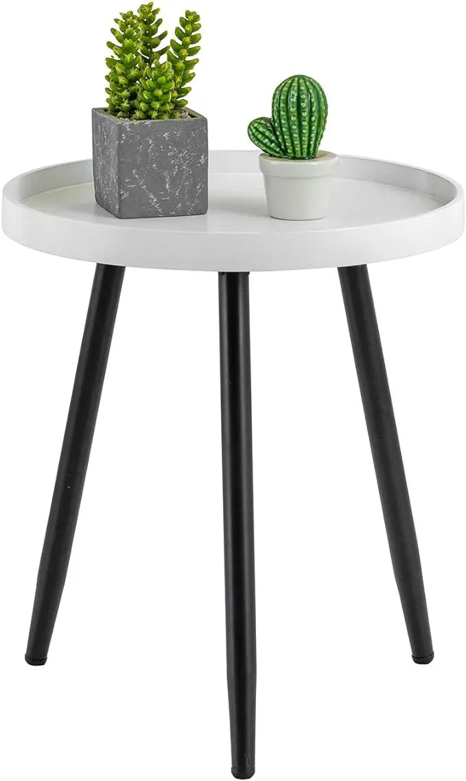 Round Side Table Wooden Tray Table with Metal Tripod Stand Nightstand Coffee Table End Table for Living Room Bedroom Office Small Spaces, 18" H x 15" D (White & Black)