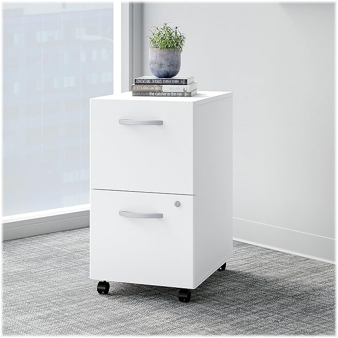 Bush EO108WHSU 2-Drawer Vertical File Cabinet Locking Ltr/Lgl Pure White 20.16-Inch