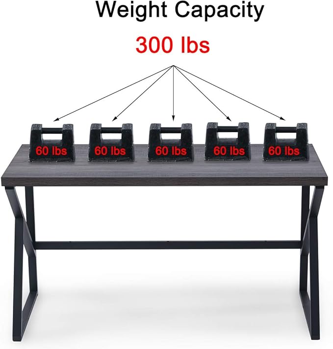 HSH Large Rustic Grey Computer Desk, Metal and Wood Home Office Desk, Industrial Vintage Soho Study Writing Table, Big Long PC Desk Workstation for Livingroom Bedroom, Dark Gray Oak, 60 Inch Wide