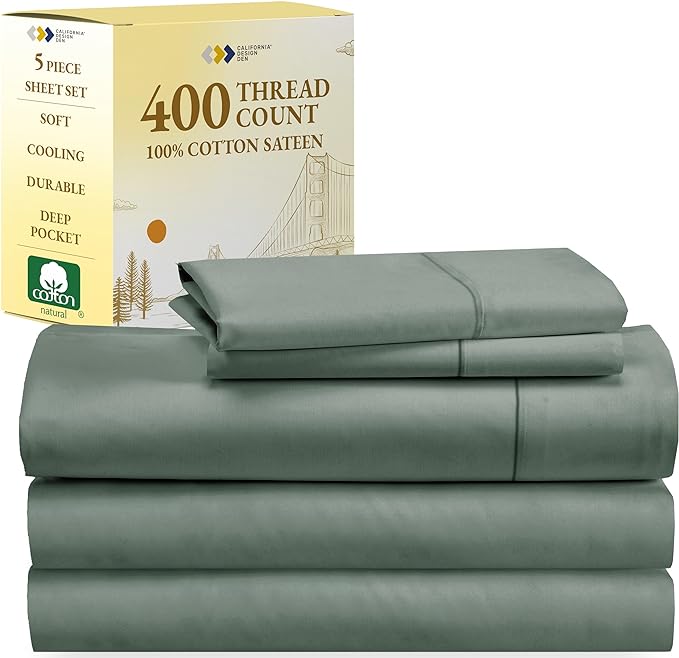 Split King Sheets for Adjustable Bed, Soft 100% Cotton Sheets, 400 Thread Count Sateen,5 Pc Set - 2 Twin-XL Fitted Sheets, Deep Pocket Sheets, Cooling Sheets, Beats Egyptian Cotton Claims (Sage Green)