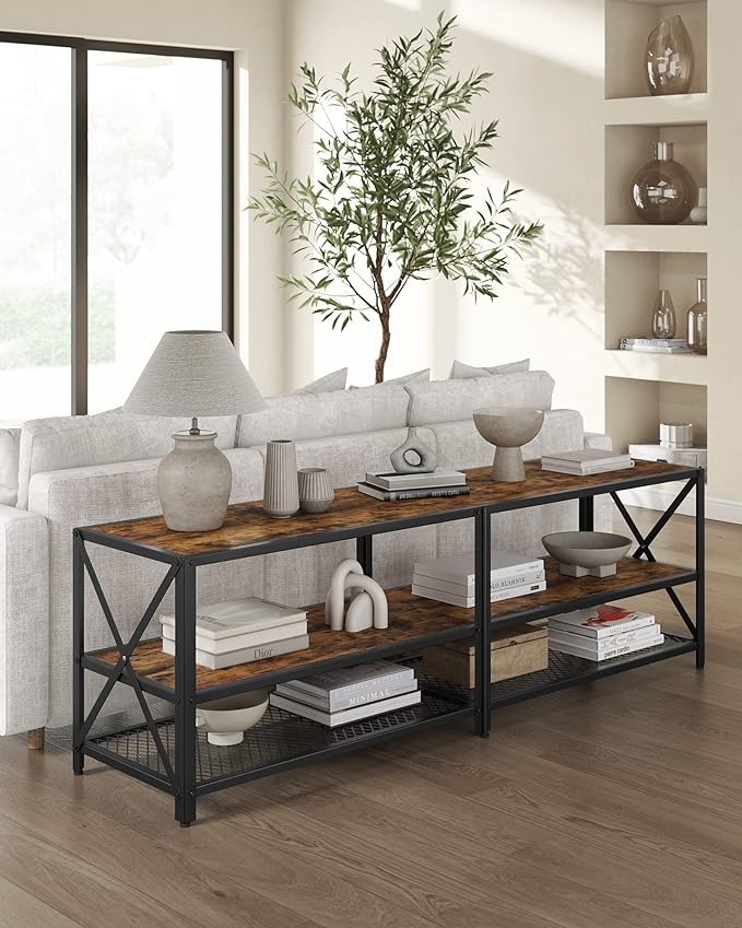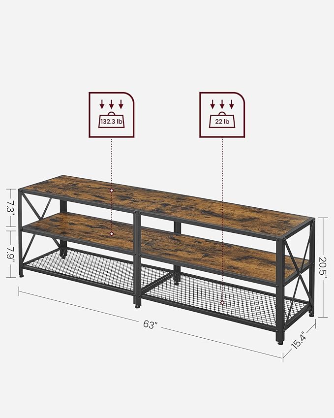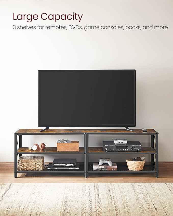 VASAGLE TV Stand, TV Console for TVs Up to 70 Inches, TV Table, 63 Inches Width, TV Cabinet with Storage Shelves, Steel Frame, for Living Room, Bedroom, Rustic Brown and Black ULTV095B01