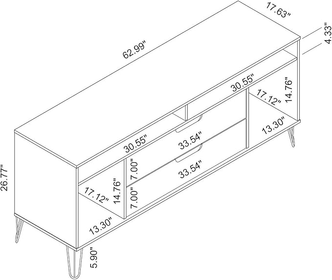 Manhattan Comfort Rockefeller Modern 2 Drawers Living Room Television Stand with Metal Legs, 62.99", Off White