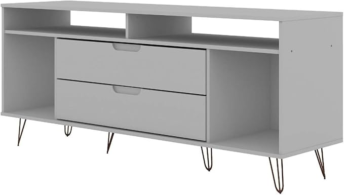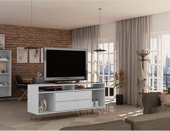 Manhattan Comfort Rockefeller Modern 2 Drawers Living Room Television Stand with Metal Legs, 62.99", White