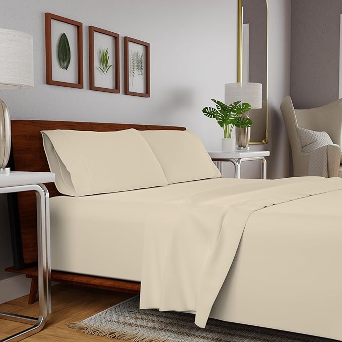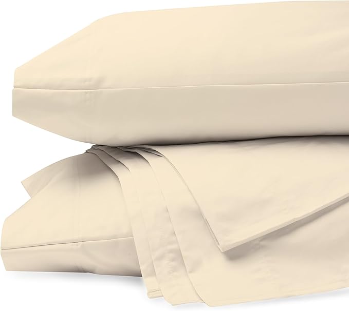 Purity Home Organic 100% Cotton Percale Sheets Queen Ecru, 16" Deep Pocket Queen Sheets Set, Sheets for Queen Size Bed, Cooling Sheets, Crisp & Breathable, Queen Sheet Set Ecru