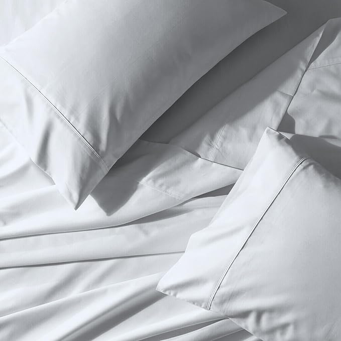 Purity Home Organic 100% Cotton King Size Sheets Set Snow, Percale Weave King Bedding Set, Crisp, Cooling & Breathable Snow Bed Sheets King Size, Fits Mattress Upto 16" Deep Pocket - White