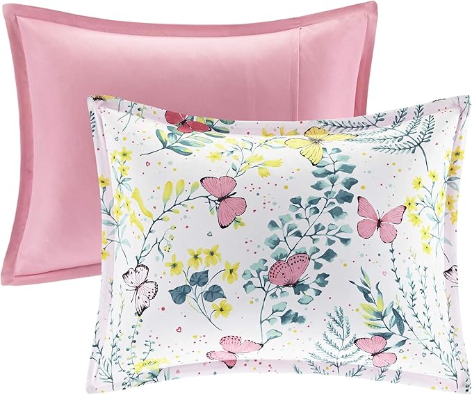 Mi Zone Kids Cynthia Comforter for Girls Microfiber Animal Butterfly Print, Modern All Season Down Alternative Kids Bed Set, Matching Sham, Decorative Pillow, Twin, Pink 3 Piece