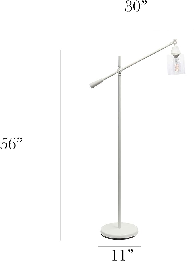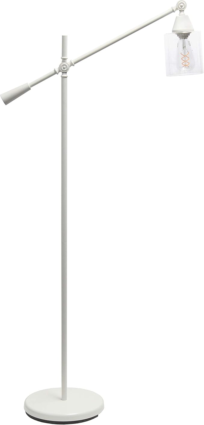 Elegant Designs LF1030-WHT Pivot Arm Glass Shade Floor Lamp, White