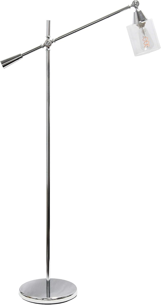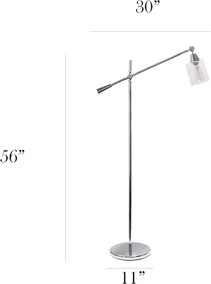 Elegant Designs LF1030-CHR Pivot Arm Glass Shade Floor Lamp, Chrome