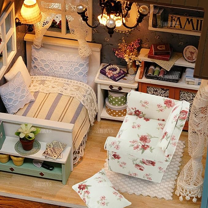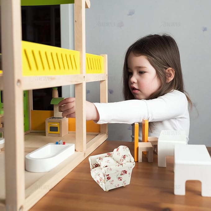 AUEAR, 1:12 Mini Wooden Sofa Arm Chair Furniture for Living Room