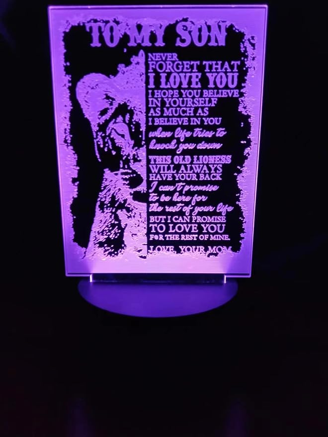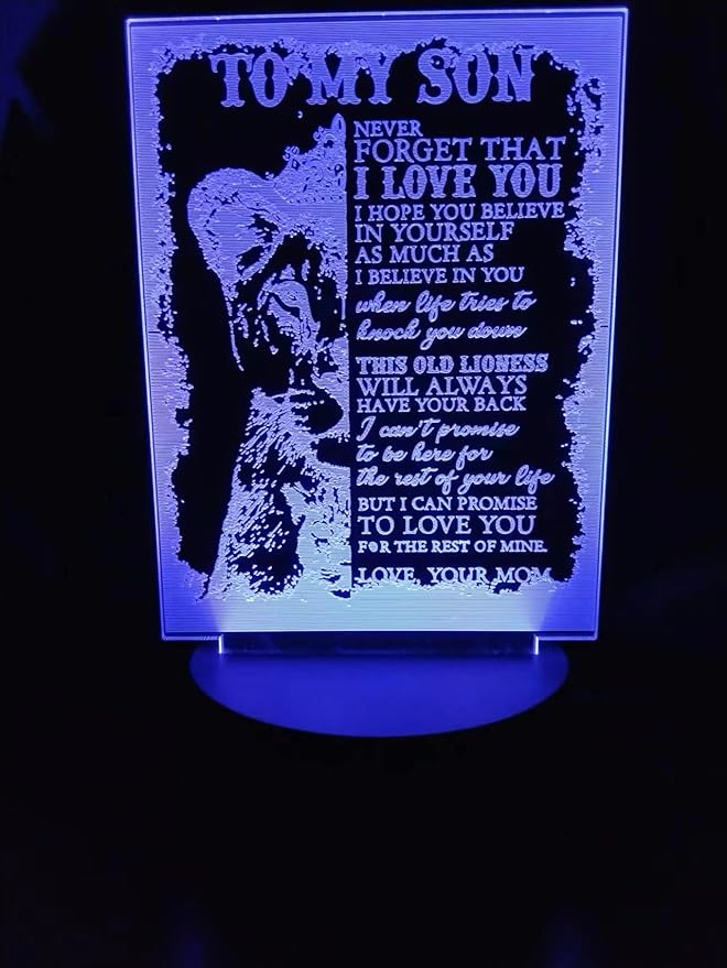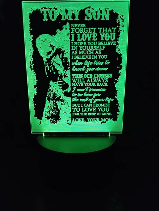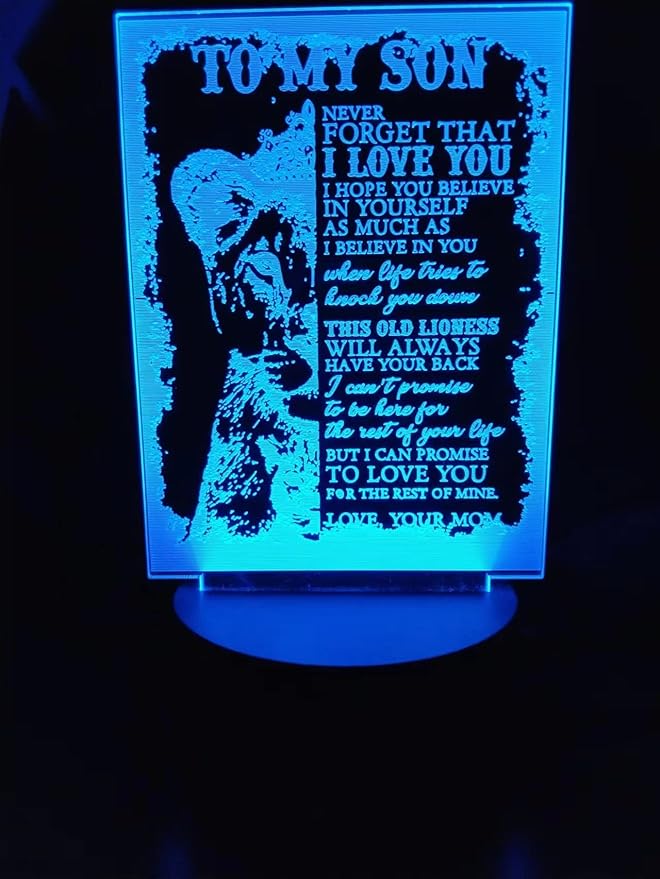 Dear Son 3D Illusion Lamp - 7 Colors Lion 3D Table Decoration Acrylic USB Lamp to My Son Arts Bedside Decors - Bedroom Decor Light Xmas New Year Birthday Gifts from Father Mother