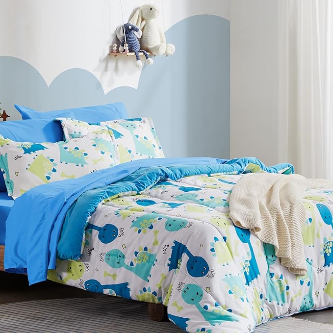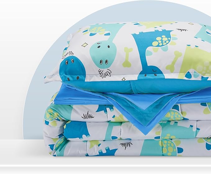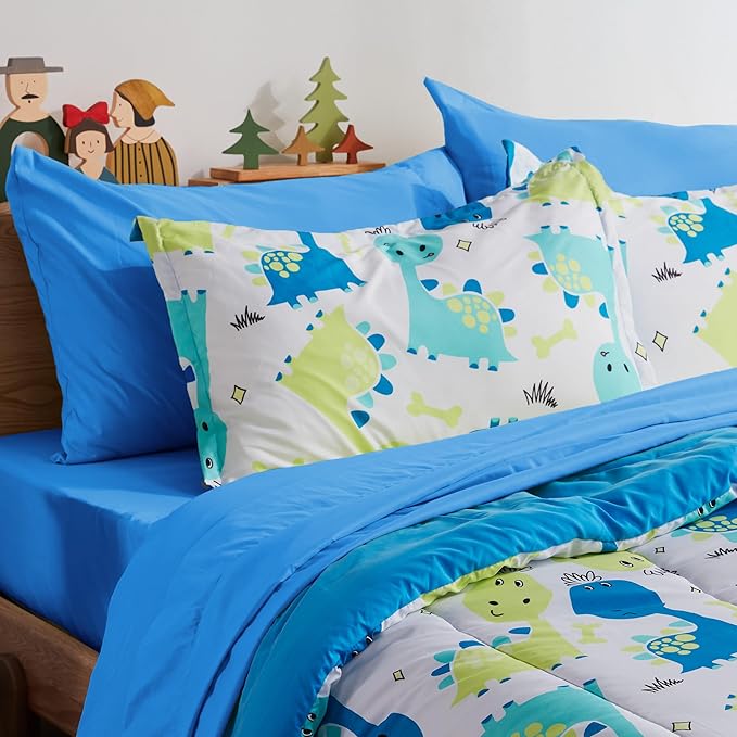 SLEEP ZONE Kids Twin Bedding Comforter Set - Super Cute & Soft Kids Bedding 5 Pieces Set with Comforter, Sheet, Pillowcase & Sham (Cute Dino)