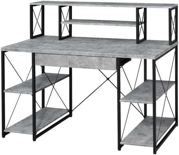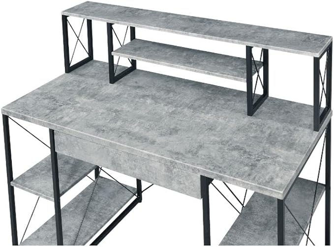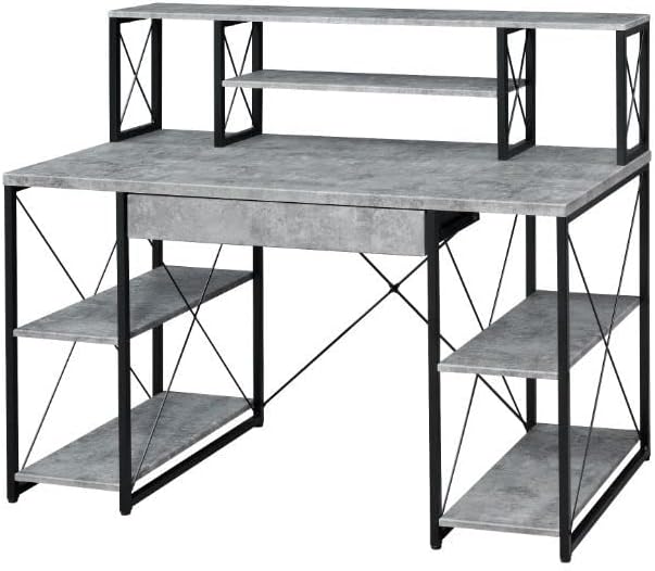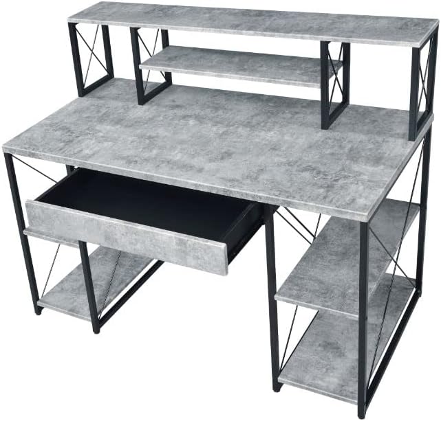 Acme Amiel Wooden 1-Drawer Writing Desk in Faux Concrete and Black