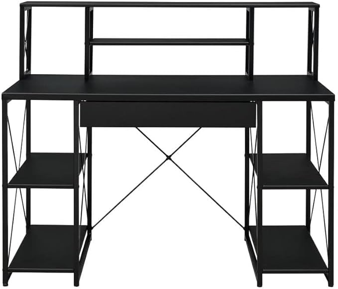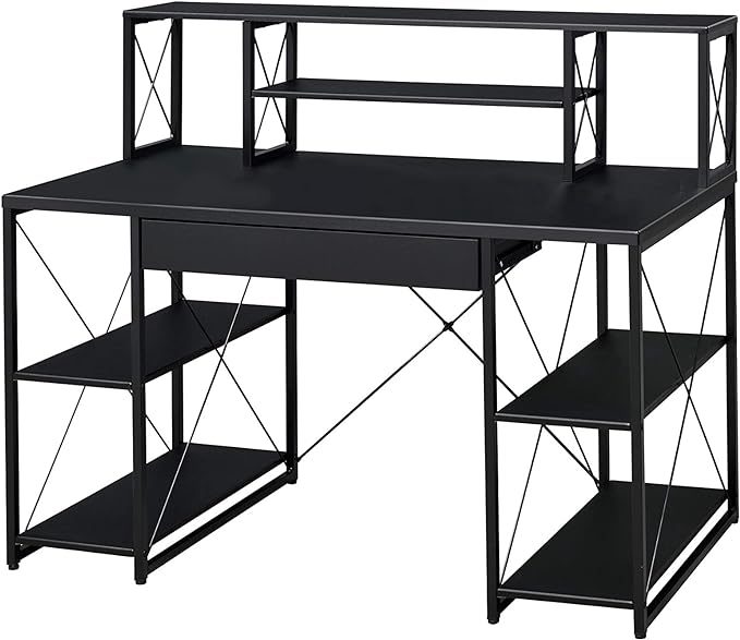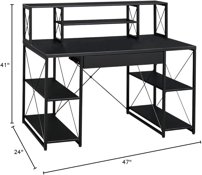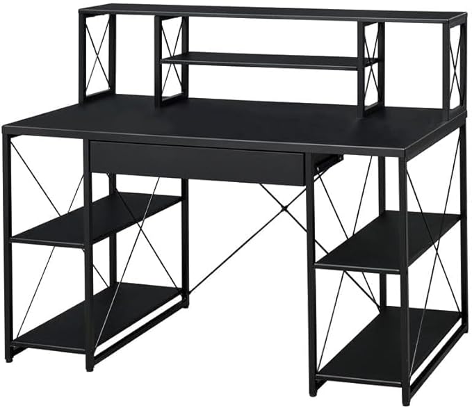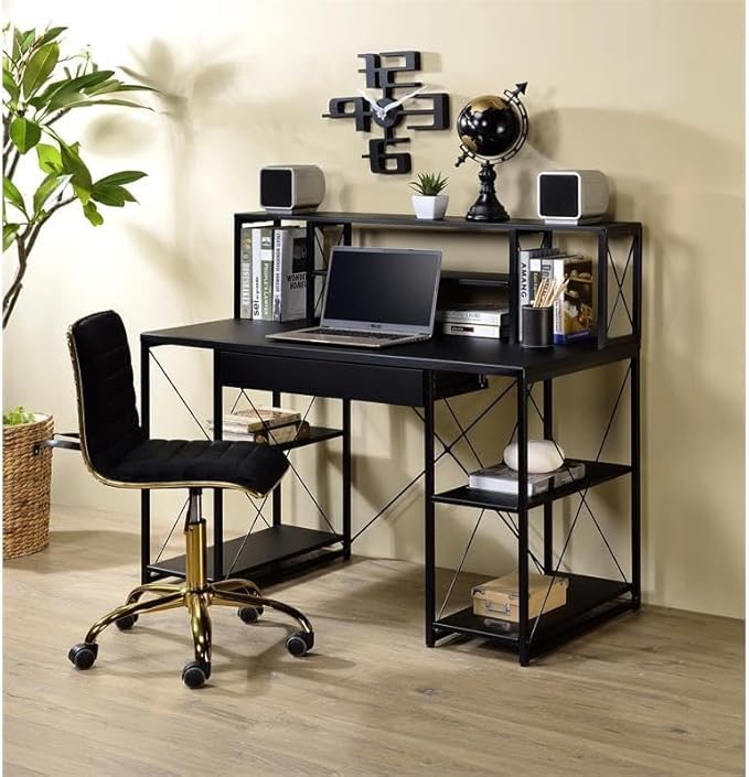 Acme Amiel Wooden 1-Drawer Writing Desk with Small Hutch in Black